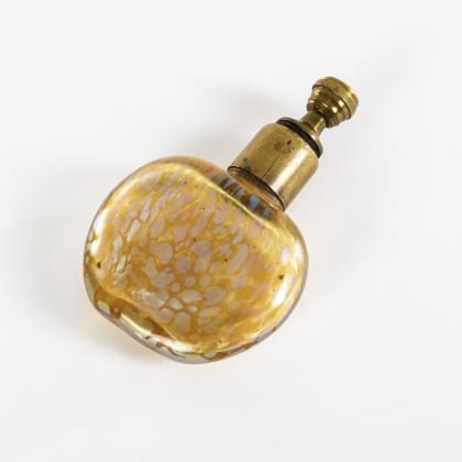 Zylindrischer, geätzter Korpus mit metallmontiertem Stand und Scharnierdeckel. Schauseitig ein polychromes und goldgemaltes Floralmuster