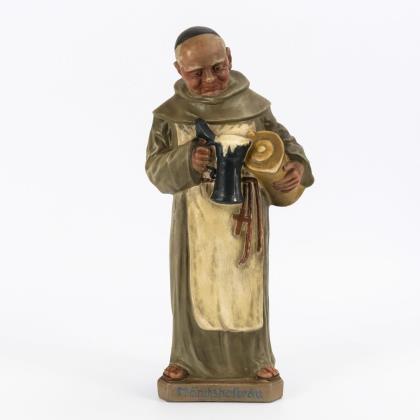 Figürlicher Behälter mit aufklappbarem Kopf; innen ein Napfeinsatz (Tintenfass?)