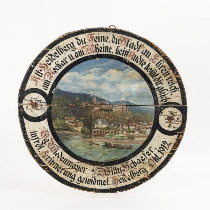 Pokal mit graviertem Allianzwappen; auf dem Fuß Widmung von Carl August Lindemann an Hans Vüllers, Heidelberg 1912