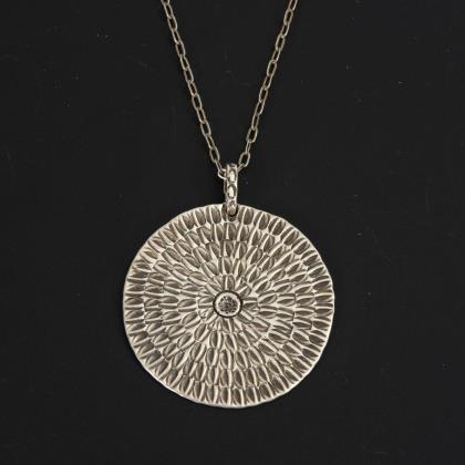 Scheibenanhänger mit Blütengravur, an Ankerkette mit Ringfederschließe