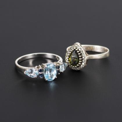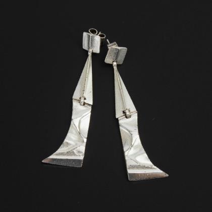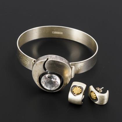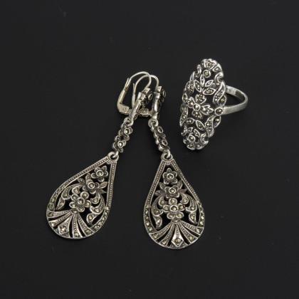 Ohrhängerpaar und Ring mit Markasitbesatz. Federbügel. Schmale Schiene