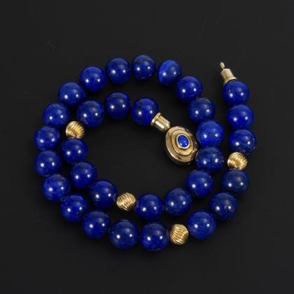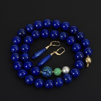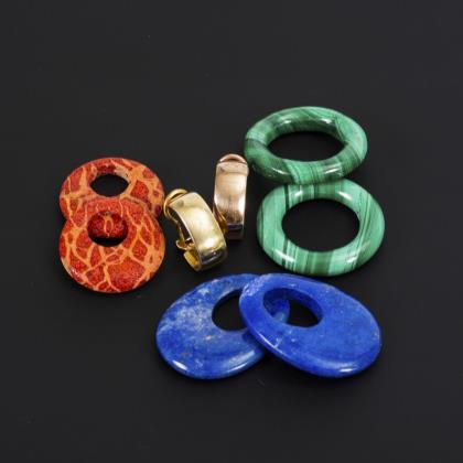 Lapislazulis und Achatscheibe an verschiedenen Zierketten. Karabiner- und Ringfederschließen