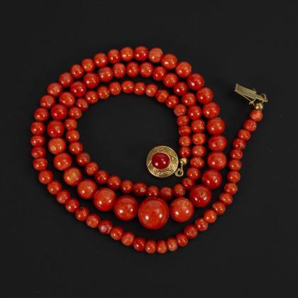 Korallenkette mit Kugelschließe. |Siehe Nachtrag im Text.