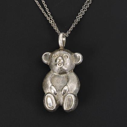 Plastisch gestalteter Bär (ehem. Babyrassel) an langer Ankerkette mit Karabinerschließe