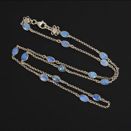 Erbskette mit zargengefassten Opalcabochons, an Karabinerschließe