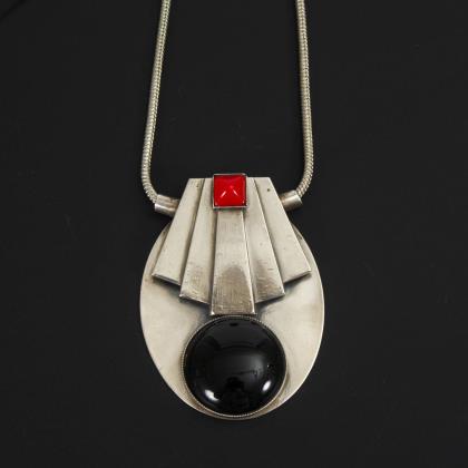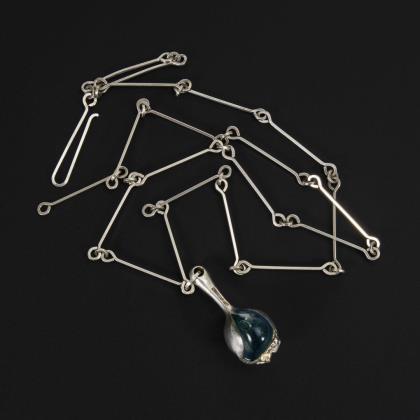 Anhänger mit Imitation an Kette und Grünachatbrosche.
