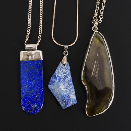 3 Ketten mit Lapislazuli- und Achatanhänger.