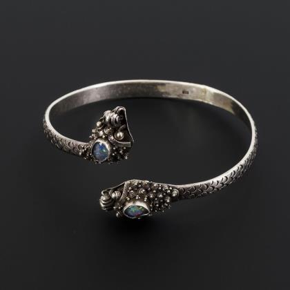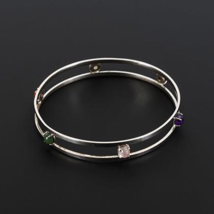 2-stegiger, geschlossener Reif mit Steincabochons (u.a. Tigerauge, Rosenquarz, Grünachat)