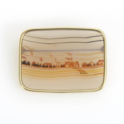 Durchscheinende Achattafel in Zargenfassung. Kugelhaken