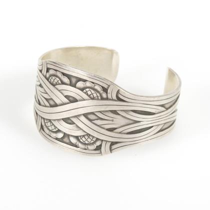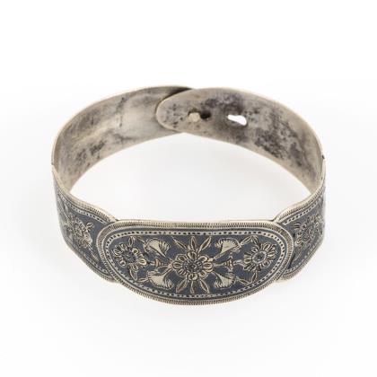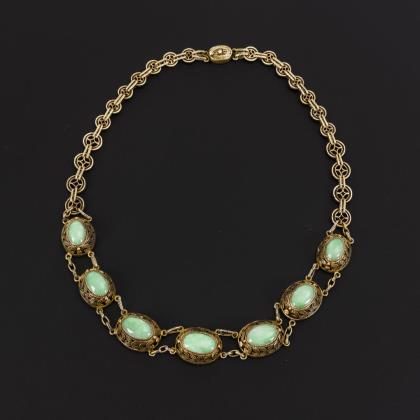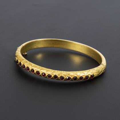 Ovaler Klappreif mit 15 kleinen Granaten. Kastenschloss mit Sicherheitskette