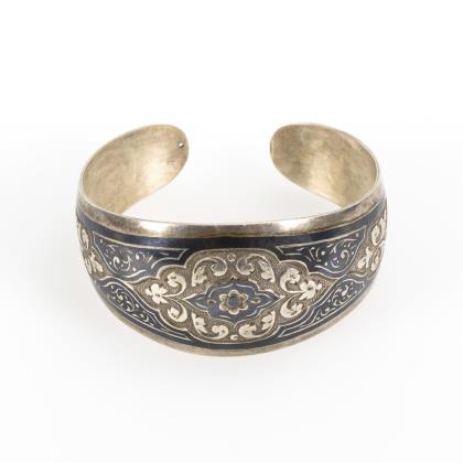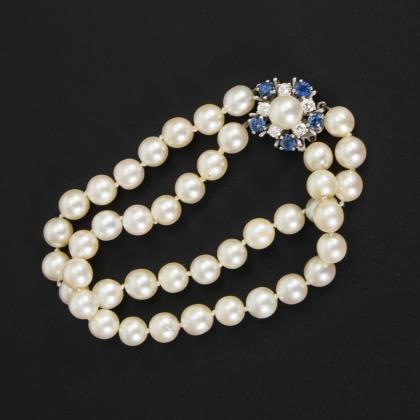 2-reihiges Zuchtperlenarmband mit feinen Saphiren und Brillanten.