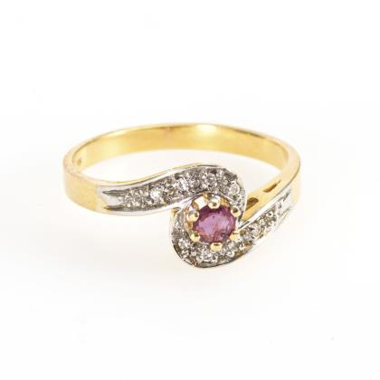 Plastisches Steinherz mit kleinem Rubin und 4 Perlchen. Klippöse mit Achtersicherung