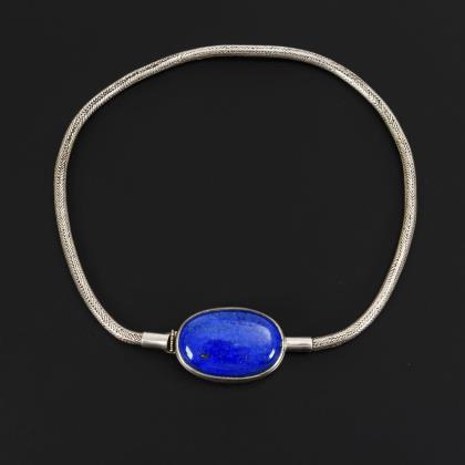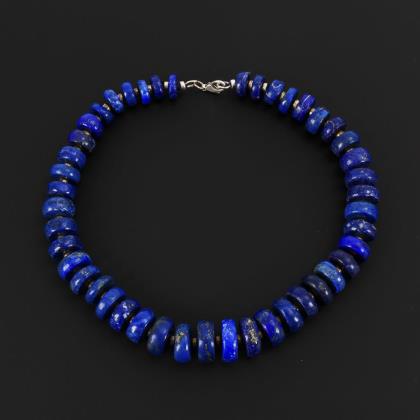 Schnürkette mit Lapisscheiben im Verlauf, an Karabinerschließe