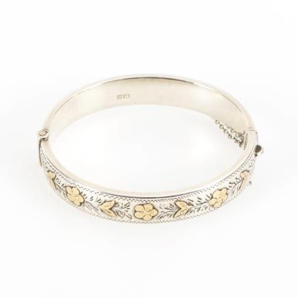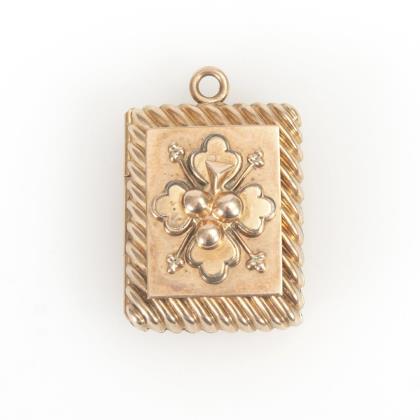 Ovale Klappreif mit schauseitigen, teilvergoldeten Gravuren. Kastenschloss mit Sicherheitskette