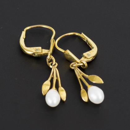 Abgehängte Zuchtperlen und kleine Diamanten. Federbügel