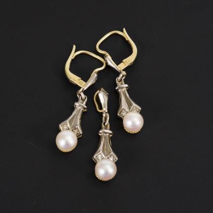Anhänger und Ohrhängerpaar mit Zuchtperlen und Diamanten.