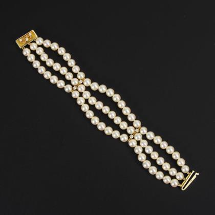 3-reihiges Zuchtperlenarmband mit Brillanten.