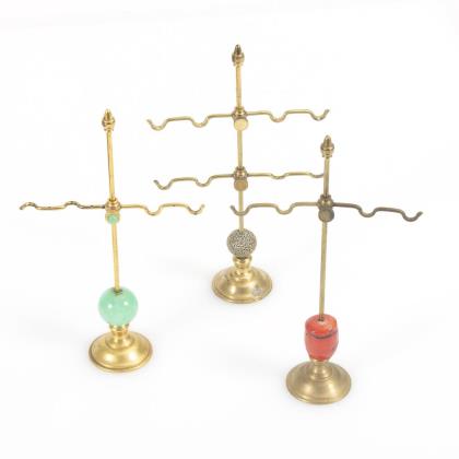 Cabochons mit perlchenbesetzten Montierungen. Starre Öse, Kugelhaken. Schmale Schiene