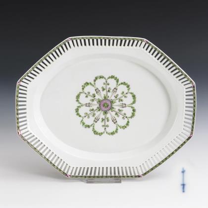Form "Konisch". Oktogonale Platte mit Eichenlaubbordüre und einer Rosette im Spiegel