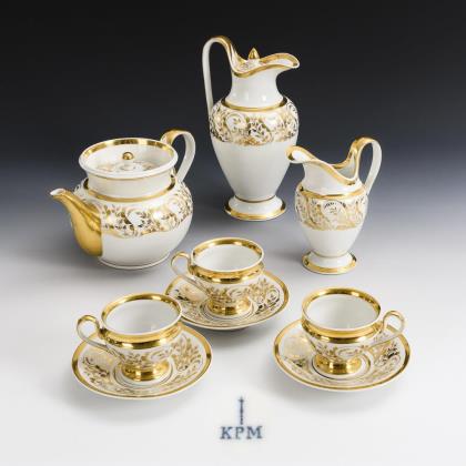9 Teile eines Biedermeier-Kaffeeservice mit Goldmalerei. KPM Berlin.