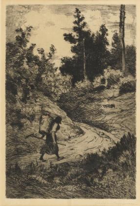 GLEICHEN-RUßWURM, Heinrich Ludwig von (1836 Schloss Greifenstein/Bonnland - 1901 Weimar). Waldlandschaft mit Kiepe tragender Bäuerin.