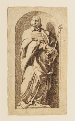 Entwurf für die Darstellung des französischen Königs Ludwig IX. (1214 - 1270), der 1297 von der katholischen Kirche als Heiliger anerkannt wurde, für die Gaultier zugeschriebene Folge der frühen Könige von Frankreich: "Kings of France from Pharamond to Henri III", ca. 1574 - 1589