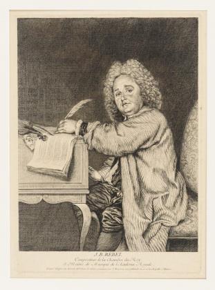 Porträt des Komponisten Jean-Féry Rebel, nach Antoine Watteau, bezeichnet "J.B.Rebel Compositeur de la Chambre du Roy, et Maitre de Musique de l'Académie Royale."