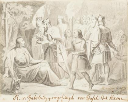 SCHWIND, Moritz von (1804 Wien - 1871 Niederpöcking). "R[udolf] v[on] Habsburg empfängt vor Basel die Krone".