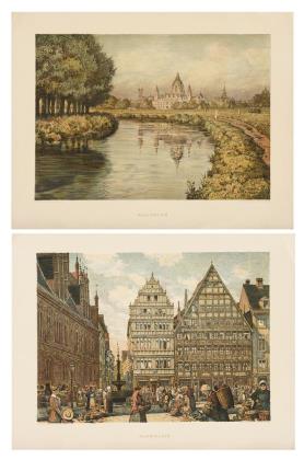 JORDAN, Ernst (1858 Hannover - 1924 Barsinghausen). 2 Werke: "Stadtturm" und "Herrenhausen Hannover".