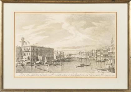 7 von 38 Ansichten nach den Veduten von Canaletto (1697 - 1768) aus Antonio Visentinis Werk: "Urbis Venetiarum prospectus celebriores", 1751 - Tafel II: "Ab Aedibus hinc Foscarorum, illinc Linorum, usque ad Templum Charitatis", etwas stockfleckig, am Rand mit Lichtschaden | Tafel "3": "Prospectus ab Aedibus Flanginorum usque ad Bembos", etwas stockfleckig, am Rand mit Lichtschaden | Tafel IV: "Hinc ex Platea S. Viti, illinc es Domo Corneliorum, ad idem Telonium", am Rand mit Lichtschaden | Tafel VIII: "Hinc ab Aedibus Publicis Rivoalti, illinc an SS. Apostolis ad Grimanam Domum", etwas stockfleckig, am Rand mit Lichtschaden | 2x Tafel XI: "Areae majoris S. Marci Prospecta ad Templum S. Jeminiani", je etwas stockfleckig, am Rand mit Lichtschaden | Tafel XII: "Areae majoris S. Marci Prospecta ad Templum S. ejusdem", etwas stockfleckig, am Rand mit Lichtschaden