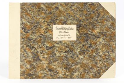 Vollständige Klappmappe mit 6 Radierungen zu Johann Wolfgang Goethes Geburtshaus in Frankfurt am Main, 39,5 x 53,5 cm | 45 verschiedene Ansichten von vorwiegend Köln und Aachen, teils farbig oder koloriert, verschiedene Formate, max. 45 x 59,5 cm, teils stockfleckig, verschmutzt, knickspurig