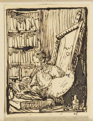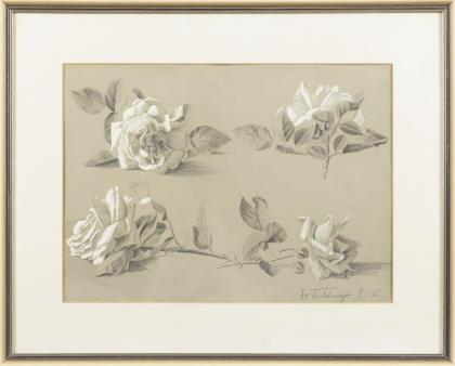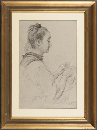 Porträt eines Herren, Tuschzeichnung, monogrammiert, Abbildung: 8,2 x 5 cm, gerahmt & hinter Glas: 21 x 17cm, oben rechts mit kleinem Riss | Porträt eines lesenden Mädchens, Kohlezeichnung, monogrammiert, Abbildung: 12,8 x 6,7 cm, gerahmt & hinter Glas: 15,3 x 19,2 cm