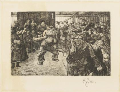 ZILLE, Heinrich (1858 Radeburg - 1929 Berlin). "Ringkampf in der Schaubude".