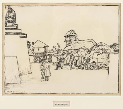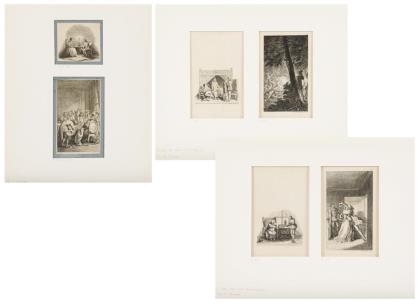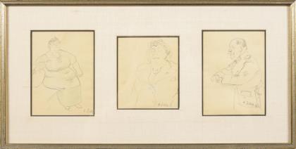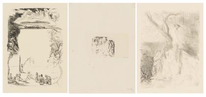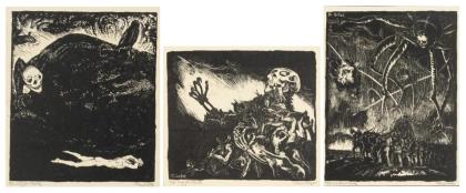 "Der Tod frißt die Menschheit", Blatt: 11,5 x 13,2 cm, verso Stempel "Karl Lotze", verso betitelt, auf braunem Papier montiert 32 x 24,8 cm | Ohne Titel, Blatt: 14,8 x 11,8 cm, auf braunem Papier montiert 32 x 24,8 cm | "Der Mensch und das Schicksal", Blatt: 13,7 x 12 cm, verso Stempel "Karl Lotze", verso betitelt, auf braunem Papier montiert 32 x 24,8 cm