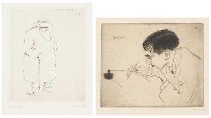 "Hans Thoma", Platte: 14 x 11,5 cm, Blatt: 25,5 x 21 cm, Exemplar: XXIV/XXX | "Pascin", Platte: 10 x 12 cm, Blatt: 24,7 x 32,5 cm, bezeichnet "Pascin arbeitend", Randbereich knickspurig