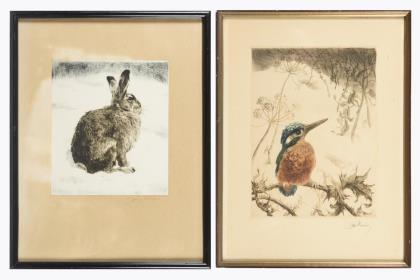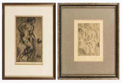 Artur Erdle: "Weiblicher Akt", Radierung, Probedruck, um 1920, Platte: 15 x 10 cm, gerahmt & hinter Glas: 35 x 28 cm | Wilhelm Oesterle: "Weiblicher Akt", Radierung, in der Platte datiert [19]20, Platte: 23,4 x 13,4 cm, gerahmt & hinter Glas: 40 x 28,5 cm