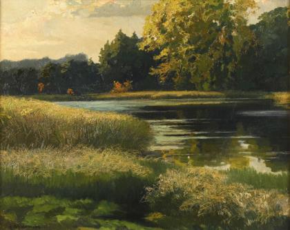 SCHLOTERMANN, Heinrich (1859 Ruhla - 1927 Berlin). Waldsee mit Schilfufer.