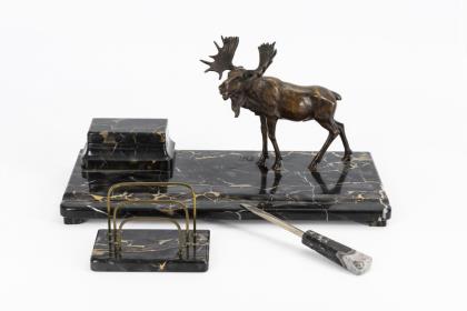 2 Jugendstil-Figuren: Großer Pfefferfresser und Mädchenakt mit Hirschkuh.