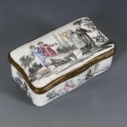 Kleine Emaildose mit Quodlibet.