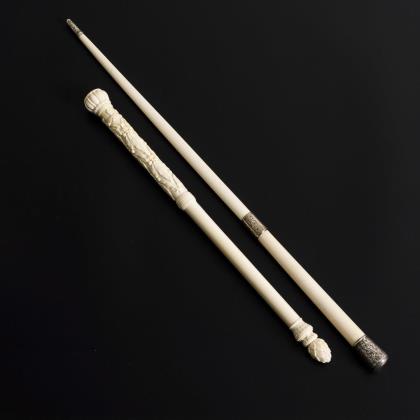 Elfenbein-Dirigentenstab mit Goldmontierung, Flanierstab und Reitgerte