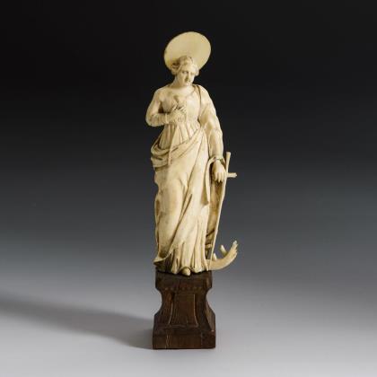 Elfenbein-Figur: Heilige Katharina.