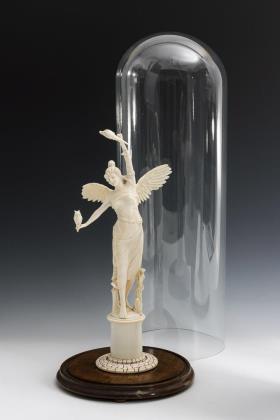 Sehr große Elfenbein-Figur unter Glasglocke: Allegorie der Weisheit.