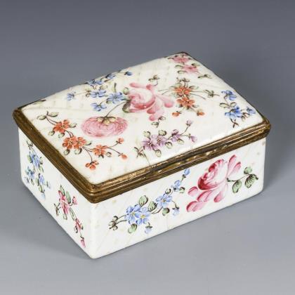 Emaildose mit Blumenmalerei.