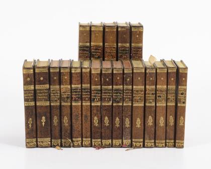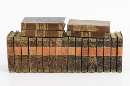 20 von 32 Bänden. Es sind vorhanden Band: 1,2, 5-7, 9, 11, 12, 15-18, 21-24, 26-29. Alle im ähnlichen, goldgeprägten Halbledereinband. Gelb und Rotschnitt