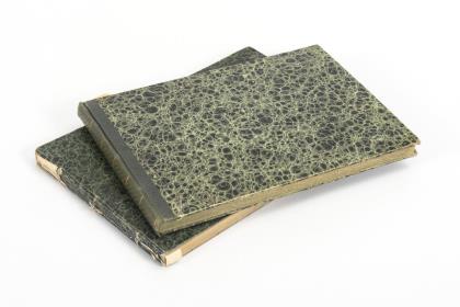 21 fotografische Vervielfältigungen von ursprünglichen Lithographien, darunter ein Porträt des Künstlers. Mit vielfigurigen Genre-Zeichnungen. In einer Art Fotoalbum mit Jugendstil-Einband geklebt