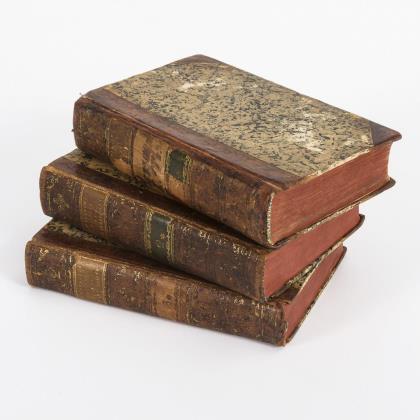 Band 1 mit 42 Stahlstichen, Band 2 mit 47 Stahlstichen, Band 3 mit 49 Stahlstichen im Pappeinband. Sowie defekter Band 5 als Zugabe