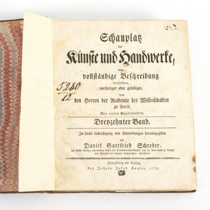 Zweyter Theil. 604 Seiten und 9 Faltkarten von technischen Geräten. Geprägter Ledereinband, Marmorschnitt