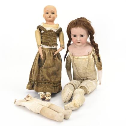 2 defekte Brustkopfpuppen und 1 Lederkörper. Armand Marseille und K & R.