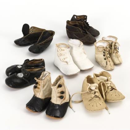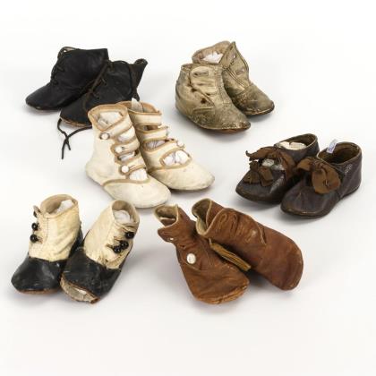 6 Paar alte Baby- und Puppenschuhe