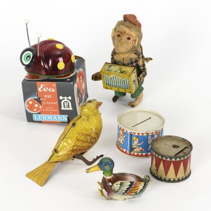 6 Teile Blechspielzeug. Lehmann und andere.